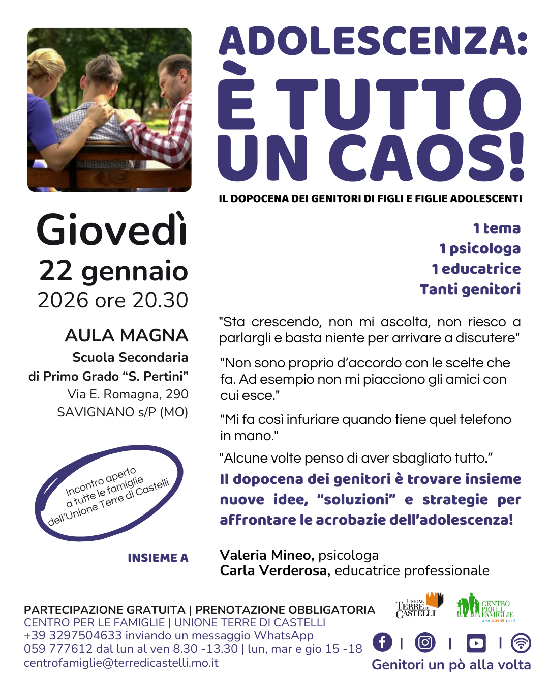 ADOLESCENZA: E’ TUTTO UN CAOS! | IL DOPOCENA DEI GENITORI ALLE GRAZIOSI 22 GENNAIO ORE 20:30